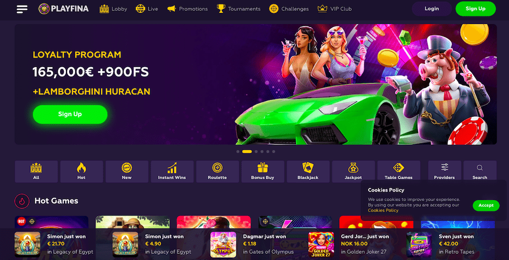 More than 11,000 slots, all varieties of blackjack, dozens of roulette games, craps, video poker, and other games are available to you at Playfina casino online The Advantages of Playfina Login - Access Exclusive Features and Enhancements! Play the Best Online Casino Games at Playfina ✓ Try Slots, Blackjack, Roulette, Craps and Video Poker with Huge Bonuses. Playfina Casino How to Start Up to 1000€ + 200 FS + Secret Bonus... Playfina Casino - Bonus Codes – 50 Free Spins!
